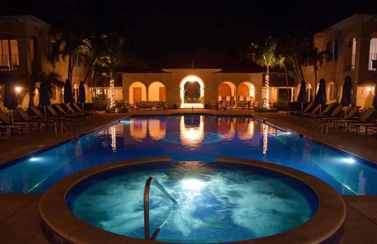 The mosaic pool is a great place to swim, or relax beside the Caribbean gardens.
